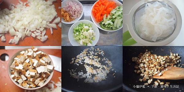 寬麵按包裝指示煮好,撈起,沖冷開水降溫 (圖三),放入碗中。五香豆乾切丁 (圖四)。