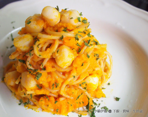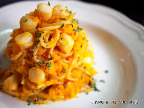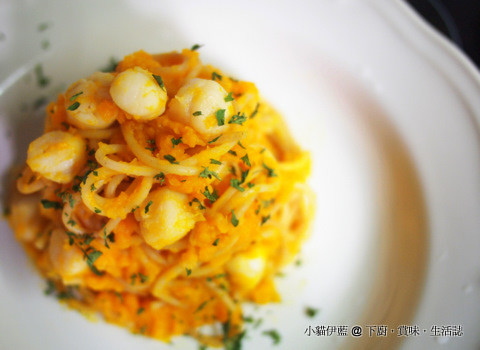 香蒜南瓜帶子意大利麵 Spaghetti with Scallops in Garlicky Pumpkin Sauce