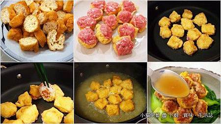 先煎肉餡那一面,除了令肉餡有煎過的焦香口感和風味,也可以幫助釀豆卜定型,不易脫餡。
