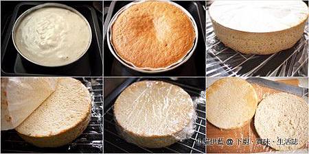 海綿蛋糕油份很少,很容易乾掉。待涼的過程中,可以用保鮮紙包裹蛋糕,保持濕潤,減少水份流失。
