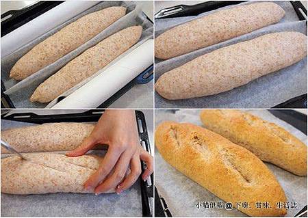 並在焗爐中噴水或預先放入一盤熱水,製造蒸氣 (圖四)。烤20~25分鐘後可以取出。
