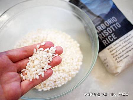 短身米中,Arborio、Vialone Nano、Carnaroli 等品種,都是適合做Risotto的米。超市都有售~