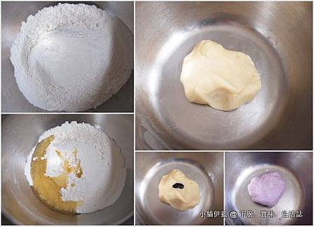 加入油和水 (圖三),用手混合均勻,成柔軟麵團 (圖四)。