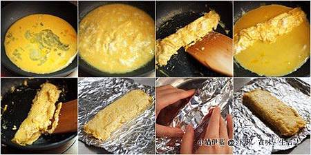 記得每次加入蛋液之前,都為鍋子抹點油,蛋會比較容易裹起來,有點焦色也更好看。