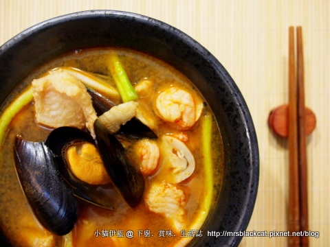 (這一張和上面一張圖是之前煮的 Tom Yam Po Taek 酸辣綜合海鮮湯~)
