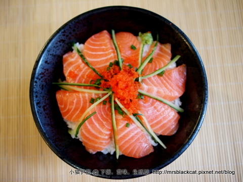 小學時代有做個推理練習的大家應該已經推斷出來,大大碗的三文魚壽司飯,就是大黑貓先生最好的「生日飯」了~^^!