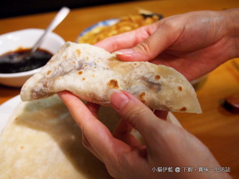夾上一塊香噴噴的蛋餅,再塗上滿滿的甜麵醬,捲捲捲......