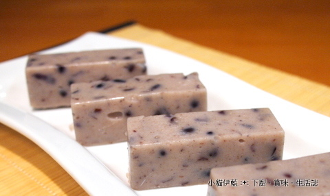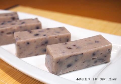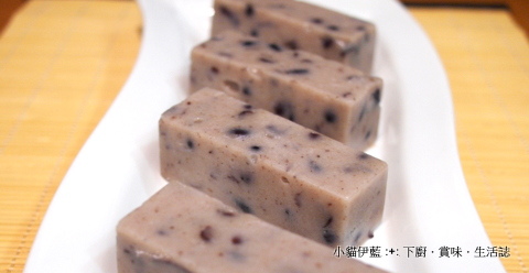 於是,同一個做法,不加玉米粒,改放蜜紅豆,做成了我心愛的中式糕點——椰汁紅豆糕^^。