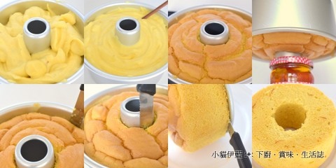 出爐後隨即倒放 (圖四),至蛋糕完全冷卻。