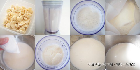 兩次濾出的杏仁漿混合在一起 (圖八)。