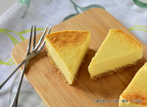 取出餅底後,請務必完全放涼,讓餅底變脆,才加入乳酪蛋糕餡;否則餅底會變濕軟。