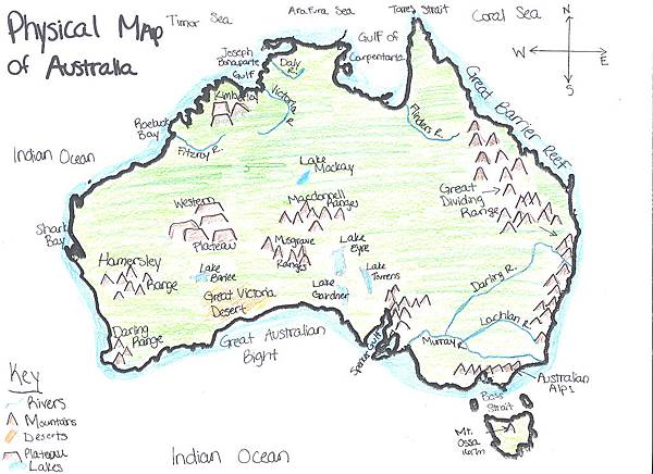 有趣的地名如「Murray-darling Basin」「Alice Springs」「Table Mountain」也特別記得。