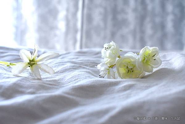 左邊這朵小白花、與右邊這一小束並蒂白櫻,是我家的裝飾花。