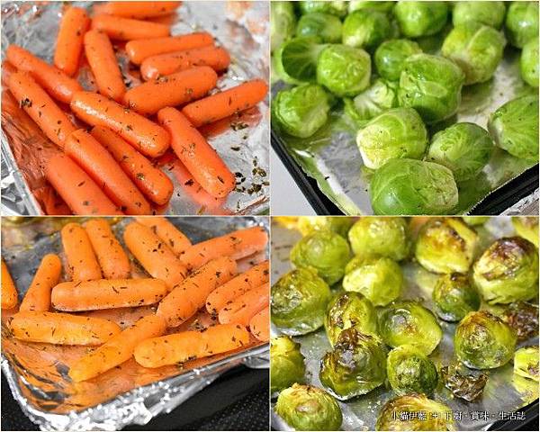 炙烤球芽甘藍 & 蜜烤小甘筍 & 毛毯捲小豬——
