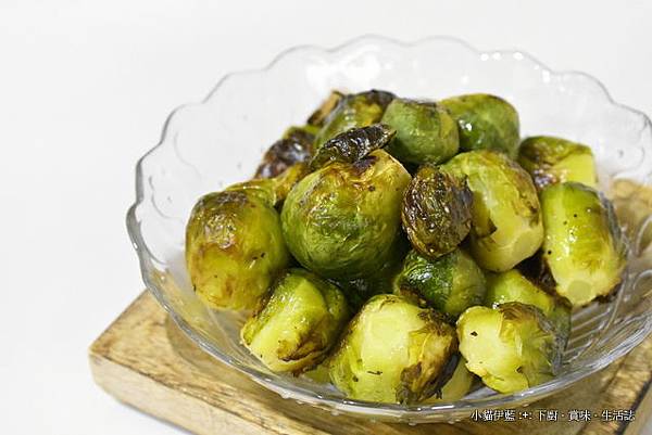 球芽甘藍要確切地印乾水份,否則會變成「蒸熟」而不是「炙烤」,沒有脆皮的效果哦~