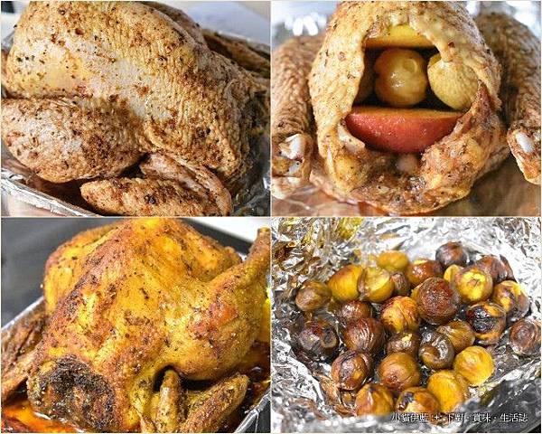我這裡就從簡 (其實是小雞的內腔容量也很有限),單放栗子來釀烤雞^^。