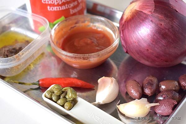 鹽漬鯷魚 Anchovies......1尾 <----也稱「小銀魚」,罐裝或玻璃瓶裝的都可以~