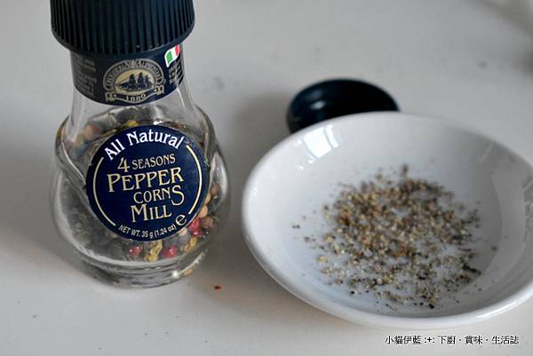 再佐以少量肉豆蔻、四色胡椒 (黑胡椒、白胡椒、青胡椒、粉紅胡椒)。