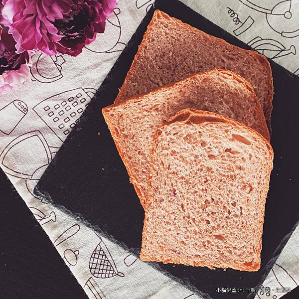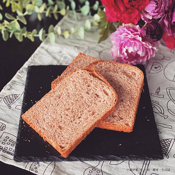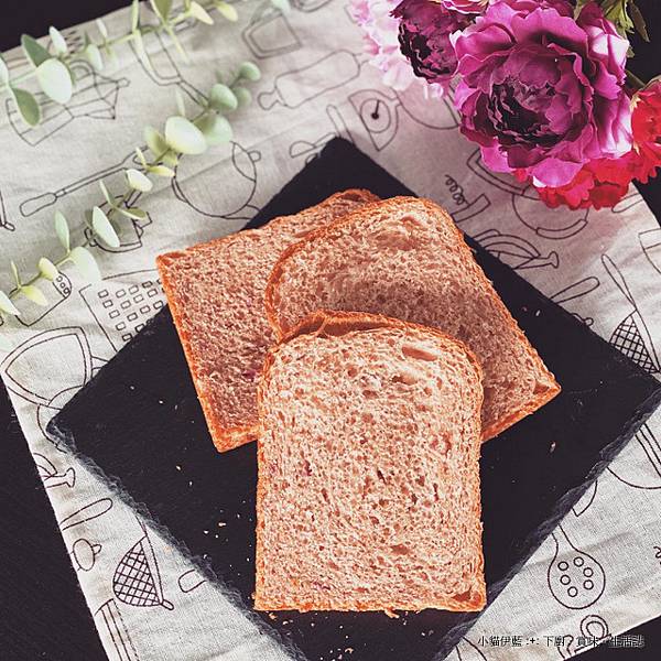 紅色的吐司,以玫瑰花做主題;搭配練乳的香甜細膩,做成粉紅色的柔軟生吐司。