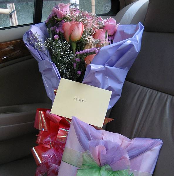那一天 H 開車來接我去慶祝的時候,後座就已經擺好了一大束鮮花。