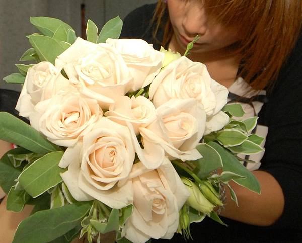 晚餐後很隨意地說進去花店逛逛看,然後轉身捧著一早已經預訂好的花束送給我......