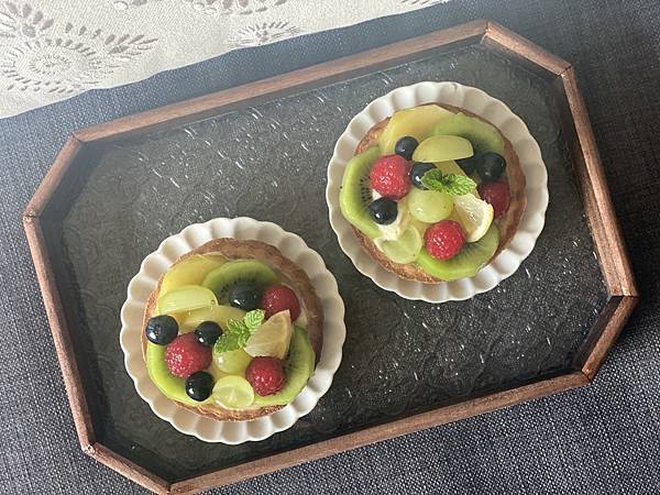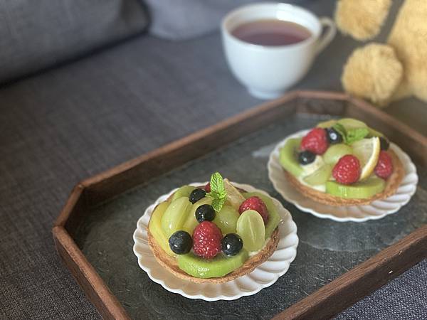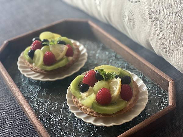 雖然白巧克力有非常好的防水作用,但是還是建議享用前再放上水果,減少水果出水,影響塔的口感。