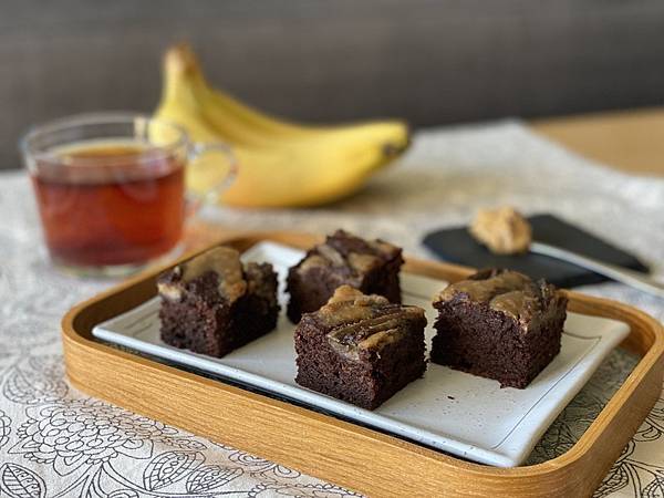 [無蛋奶.無麩質] 純素.香蕉花生醬雙重巧克力「米布朗尼」